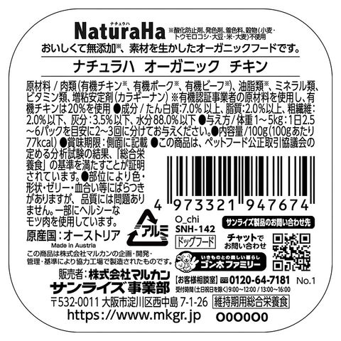 サンライズ ナチュラハ オーガニック チキン 100g マルカン 犬 いぬ ドッグ ドッグフード 犬フード 犬用フード フード エサ 餌 ごはん ご飯 dogfood ウェットフード ウエットフード トレイ 4973321947674 鶏肉 鶏 プレミアムフード オーガニックフード Bioマーク 穀物不使用 グレインフリー 低アレルギー 無着色 着色料不使用 酸化防止剤不使用 発色剤不使用 無添加 ngtk 20260122 y26m01 kak まとめ 箱 ケース ボール