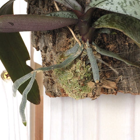 管理のポイント 風通しを好みますので、空気がよどまない環境で管理してください。コルク着生のため乾燥が早く、こまめな水分調整が必要です。根は明るい環境を好むため、根が見える状態が理想的です。