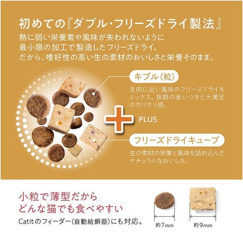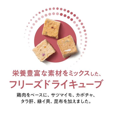 | 粒サイズ(約) | キブル:7mm フリーズドライキューブ:9mm |