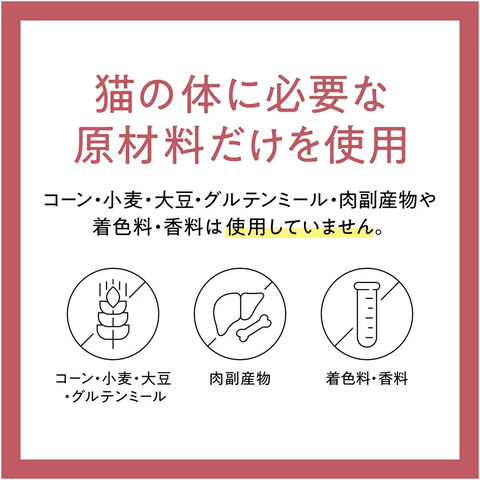| ご注意 | ※本品は成猫用です。対象年齢以外の猫には与えないでください。 ※フリーズドライが崩れやすいため、粉が目立つことがありますが品質に問題はございません。 ※天然原料を使用しておりますので、粒の色・サイズ・硬さ・香りなどにバラつきがあります。 |