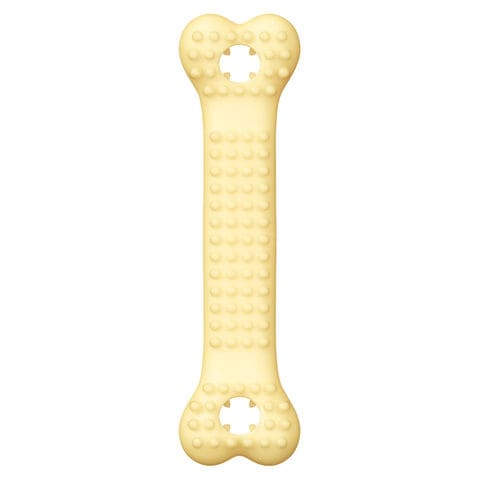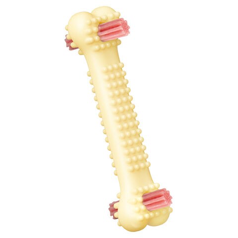| 特長 | ●ワンちゃんが喜ぶチキン風味をプラスしました。とうもろこしを主原料とした、安心してたっぷり噛める新しいタイプのデンタルトイです。 ●噛むことで歯の汚れを落とすだけでなく、L8020乳酸菌を配合することで、毎日の健康な歯周ケアをサポートします。 ●本体表面にある多くの突起が、噛むたびに口内を適度に刺激し、遊びながらデンタルケアが可能です。 ●本品の両端にある穴に、別売の「歯磨き専用ガムL8020」を入れることで、さらに効果的なデンタルケアを行えます。 ●穴にお好みの小粒おやつ(直径8mm以内)を通すことで、知育玩具としても活躍します。 |