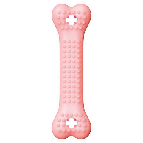 | 特長 | ●愛犬の興味をそそる甘いいちごミルクの香り付き、とうもろこしを主原料とした、安心してたっぷり噛める新しいタイプのデンタルトイです。 ●噛むことで歯の汚れを落とすだけでなく、L8020乳酸菌を配合することで、毎日の健康な歯周ケアをサポートします。 ●本体表面にある多くの突起が、噛むたびに口内を適度に刺激し、遊びながらデンタルケアが可能です。 ●本品の両端にある穴に、別売の「歯磨き専用ガムL8020」を入れることで、さらに効果的なデンタルケアを行えます。 ●穴にお好みの小粒おやつ(直径8mm以内)を通すことで、知育玩具としても活躍します。 |