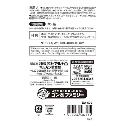 マルカン ひんやりアルミジェルマット L 猫 ネコ キャット Cat 猫用品 夏 暑さ 暑さ対策 保冷 保冷用品 ひんやり 冷たい 屋内 保冷剤 接触冷感 4906456587514 20260211 y26m02 kak ジェルマット アルミマット マット クールマット アルミ ジェル 冷却マット 夏用 ベッド 電気不要 やわらかい 洗える 多頭飼い 犬 犬用品 いぬ 小型犬 超小型犬 中型犬 大型犬 犬用 Lサイズ 熱中症対策 やわらか&クール 水拭きOK DA-629