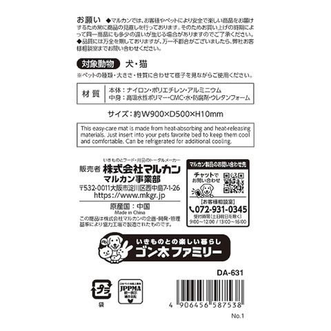 マルカン ひんやりアルミジェルマット 3L 猫 ネコ キャット Cat 猫用品 夏 暑さ 暑さ対策 保冷 保冷用品 ひんやり 冷たい 屋内 保冷剤 接触冷感 4906456587538 20260211 y26m02 kak ジェルマット アルミマット マット クールマット アルミ ジェル 冷却マット 夏用 ベッド 電気不要 やわらかい 洗える 多頭飼い 犬 犬用品 いぬ 小型犬 超小型犬 中型犬 大型犬 犬用 3Lサイズ 熱中症対策 やわらか&クール 水拭きOK DA-631