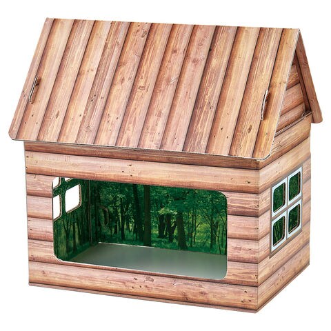 ●外側は居心地の良いログハウス風デザイン、内側はリアルな森林の景色がプリントされています。昆虫が自然の中で暮らしているような臨場感を味わえます。
