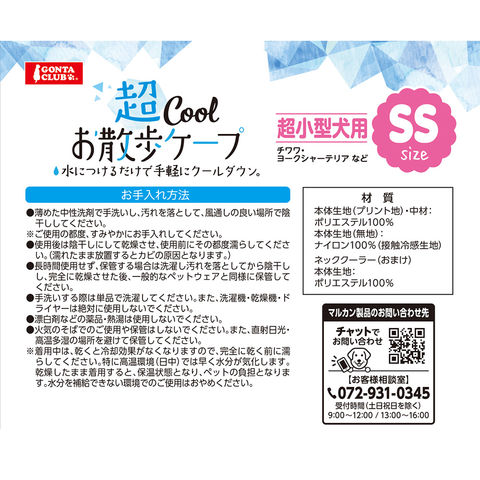マルカン 超COOLお散歩ケープ SS 4906456587644 犬用品 犬 いぬ dog 冷感素材 冷感ケープ 夏 暑さ 暑さ対策 保冷 保冷用品 ひんやり 冷たい オールステージ 子犬 パピー 成犬 アダルト シニア シニア犬 高齢 高齢犬 お出かけ 散歩 おさんぽ お出かけ用品 屋外 屋内 保冷剤 保冷剤ポケット ポケット 気化熱冷却 接触冷感 ネッククーラー 20260211 y26m02 kak クールケープ お散歩 気化熱 冷却 クールウェア 反射テープ ネッククーラー付 超小型犬 チワワ ヨークシャーテリア ヨークシャー テリア 夜のおさんぽ 反射 超Cool お散歩ケープ SSサイズ 超小型犬用 犬用 冷感 保冷剤対応 反射テープ付 DA-634