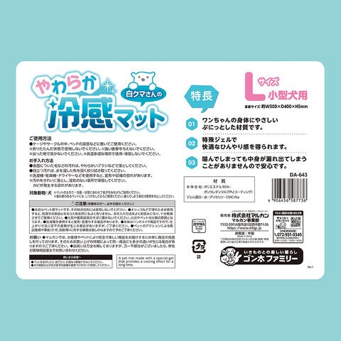 マルカン 白クマさんのやわらか冷感マット L 4906456587736 犬用品 犬 いぬ dog 冷感素材 接触冷感 夏 暑さ 暑さ対策 保冷 保冷用品 ひんやり 冷たい オールステージ 子犬 パピー 成犬 アダルト シニア シニア犬 高齢 高齢犬 20260211 y26m02 kak マット ひんやりマット 冷感マット ジェルマット 犬用 冷却マット 特殊ジェル ぷにぷに やわらかい クールマット 噛み癖 漏れない 小型犬 Lサイズ 噛んでも安心 DA-643
