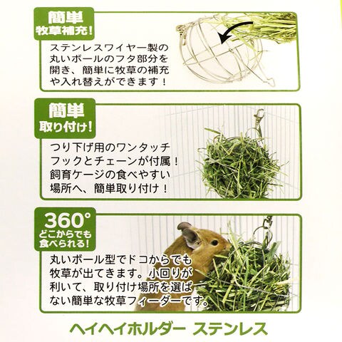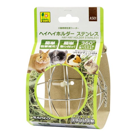 三晃商会 ヘイヘイホルダー ステンレス 4976285105012 牧草入れ 牧草 フィーダー ワンタッチ チモシー アルファルファ 食器 うさぎ チンチラ モルモット デグー 草食 ジリス ワイド 複数飼い 金網 ボール ボール型 吊り下げ つりさげ ぶらさげ 遊具 牧草フィーダー ステンレス製 小動物用品 皿 お皿 kak y26m02 20260212