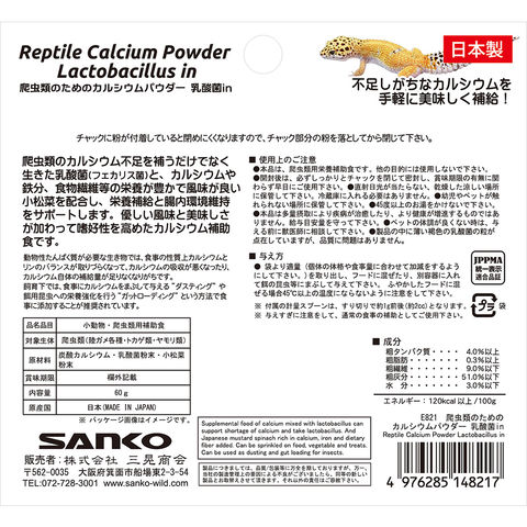 | 三晃商会 REPTIZOO 爬虫類の為のカルシウムパウダー 乳酸菌in 60g | |