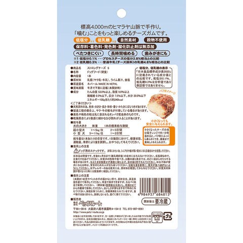 メーカー画像 ペッツルート ストロングチーズ S 1本 4984937684815 20260303 y26m03 cngc イヌ 犬 いぬ 犬用 いぬ用 dog DOG 犬フード ドッグフード ペットフード 犬の餌 犬えさ 犬餌 犬おやつ おやつ トリーツ スナック 間食 チーズガム チーズ スティックガム ガム デンタルケアガム デンタルケア 歯 奥歯 べたつきにくい 堅い かたい ストロング 長時間噛める 噛む 歯みがき 歯磨き 歯と歯茎の健康 低塩分 低乳糖 保存料不使用 着色料不使用 発色剤不使用 酸化防止剤不使用 無添加 穀物不使用 自然素材 超小型犬 小型犬 ヒマラヤ山脈手作り 手作り 与えやすい