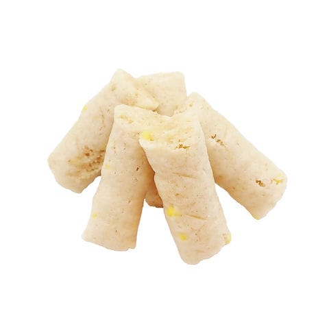 | 原材料 | 小麦粉、コーンスターチ、鶏胸肉、魚肉(白身魚、軟骨)、ナチュラルチーズ、さつまいも、ソルビトール、グリセリン、膨張剤、プロピレングリコール、炭酸カルシウム、食塩、リン酸塩(Na)、セルロース、着色料(黄4)、調味料 |