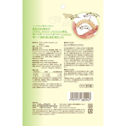 メーカー画像 ペッツルート ヤクチーズのデンタルガム SS 免疫ケア 7本入 4984937680947 20260310 y26m03 cngc 犬 イヌ いぬ dog DOG 犬おやつ dogfood ドッグフード ドックフード 間食 スナック トリーツ ヤクチーズ チーズ 濃厚 デンタル デンタルガム デンタルケア ガム 歯 歯茎 ブラッシング形状 特殊ブロック 国産 日本 日本産 弾力 ソフト 超小型犬 小型犬 噛む 免疫ケア プロポリス スピルリナ アスコフィラン シニア犬 老犬 高齢犬 食べやすい 健康維持 分包