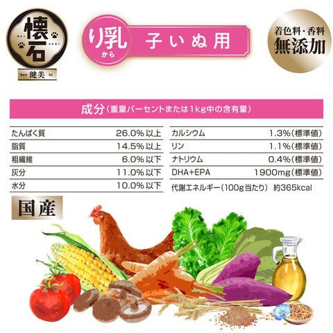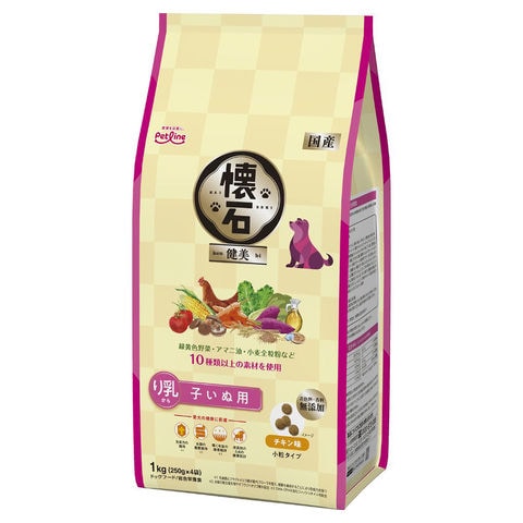 _dog イヌ 犬 ドッグフード dogfood ドックフード 犬フード フード 餌 えさ ご飯 ごはん ドライフード カリカリ ドライ 懐石 健美 子いぬ用 り乳から 1kg(250g×4袋) 子犬 パピー 仔犬 成長期の仔犬 成長期の子犬 成長期 4902418005096 小分け 小分けパック 小粒 チキン 鶏 鶏肉 20260215 kak y26m02 国産 日本産 日本 ペットライン