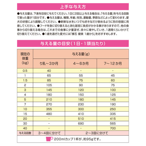 ※離乳前の子犬には与えないでください。 ※本品は治療を目的とした療法食ではありません。 ※本品は犬専用です。他の動物には与えないでください。 |
