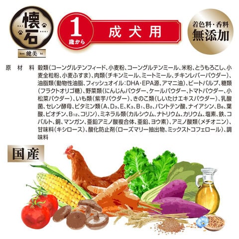 _dog イヌ いぬ 犬 ドッグフード dogfood ドックフード 犬フード フード 餌 えさ エサ ご飯 ごはん ドライフード カリカリ ドライ 懐石 健美 成犬用 1歳から1kg(250g×4袋) 4902418005126 成犬 アダルト 大人 小分け 小分けパック 小粒 チキン 鶏 鶏肉 20260215 kak y26m02 国産 日本産 日本 ペットライン