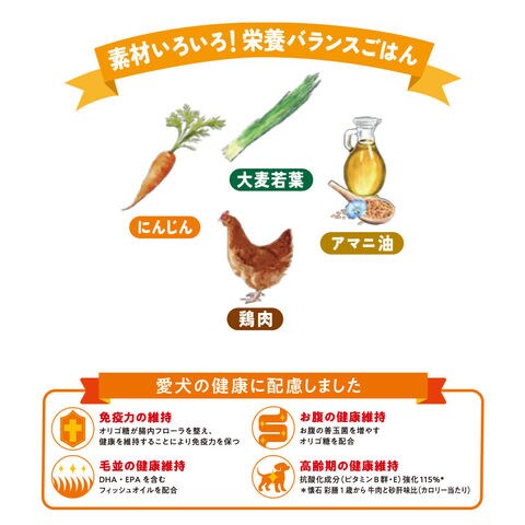 ※本品は7歳以上の高齢犬用です。対象年齢以外の犬には与えないでください。 ※本品は犬専用です。他の動物には与えないでください。 |