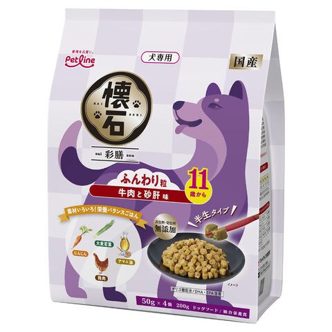 _dog イヌ 犬 ドッグフード dogfood ドックフード 犬フード フード 餌 えさ ご飯 ごはん 半生 半生フード セミドライ セミドライフード 懐石 彩膳 11歳から 牛肉と砂肝味 200g(50g×4袋) 4902418005331 20260215 kak y26m02 高齢 高齢犬 シニア シニア犬 チキン 鶏 鶏肉 小粒 国産 日本産 日本 ペットライン 牛肉 ビーフ 牛 砂肝 砂ぜり