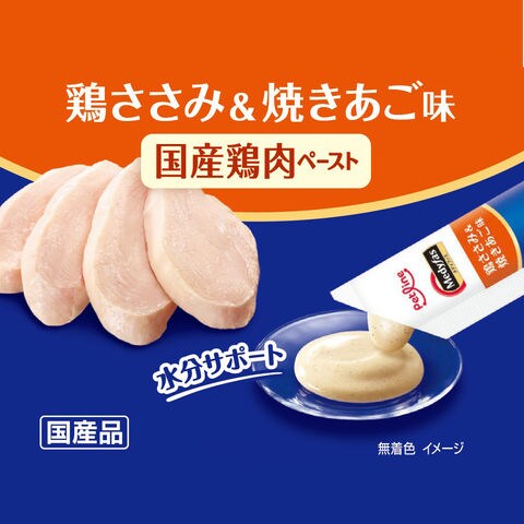 ●ミネラル等を調整した尿pH設計やたんぱく質、ナトリウム含有量に配慮し、主食と連動したトータルサポートを実現。国産鶏肉と焼きあごパウダーをベースに、まぐろ・かつお・ささみの3種の味で、おいしい時間と健康ケアを同時に叶える、国産鶏肉ペーストおやつです。 ●塩分を抑えた品のある味わいです。 ●腎臓の健康維持に配慮し、たんぱく質とナトリウム含有量を調整しました(ミネラル等の調整による尿pH設計値6.0~6.5)。 |