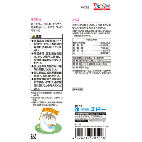 スドー もぐもぐセレクション ばにゃにゃチップ 25g うさぎ ハムスター おやつ 小動物 小動物用品 餌 えさ エサ 飼料 フード おやつ オヤツ ご褒美 ご褒美 しつけ バナナ ばなな ハムスター うさぎ チンチラ モルモット ハリネズミ フクロモモンガ 小粒 小さめ 小さい 小袋 4974212907258 kak 20260310 y26m03 ドライフルーツ フルーツ 果実 乾燥果実 乾燥フルーツ ドライバナナ バナナチップ チップ チップス スナック