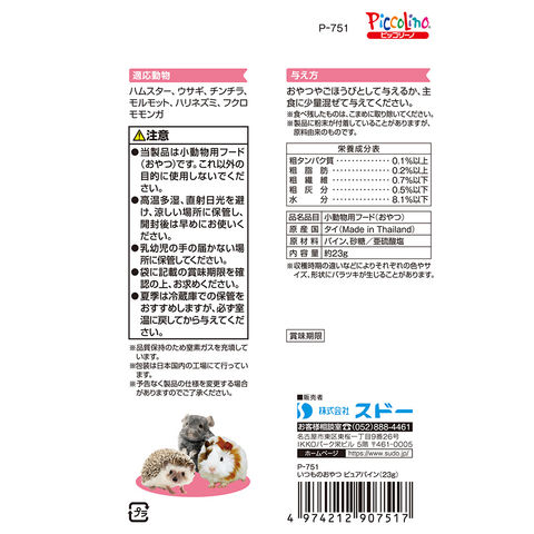 スドー いつものおやつ ピュアパイン 23g うさぎ ハムスター おやつ 小動物 小動物用品 餌 えさ エサ 飼料 フード おやつ オヤツ ご褒美 ご褒美 しつけ パイン パイナップル ハムスター うさぎ チンチラ モルモット ハリネズミ フクロモモンガ 小粒 小さめ 小さい 小袋 4974212907517 kak 20260310 y26m03 ドライフルーツ フルーツ 果実 乾燥果実 乾燥フルーツ ドライパイン ドライパイナップル