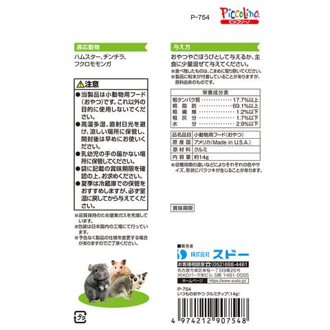 スドー いつものおやつ クルミチップ 14g ハムスター おやつ 小動物 小動物用品 餌 えさ エサ 飼料 フード おやつ オヤツ ご褒美 ご褒美 しつけ クルミ くるみ ハムスター リス げっ歯類 マウス モモンガ チンチラ デグー フクロモモンガ 小粒 小さめ 小さい 小袋 4974212907548 kak 20260310 y26m03 種 種子 ナッツ ナッツ系