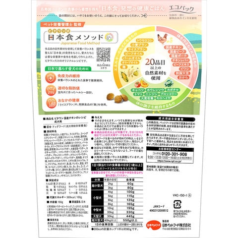 メーカー画像 日本ペットフード ビタワン 国産チキンのレシピ 成犬用 150g 4902112009512 20260316 y26m03 cngc 犬 イヌ いぬ dog DOG えさ 餌 エサ ごはん 犬用 犬用品 dogfood ドッグフード ドックフード ドライフード 総合栄養食 国産 日本産 日本 日本食 自然素材 成犬 小粒 着色料不使用 香料不使用 保存料不使用 鶏 鶏肉 チキン ポーク ビーフ ペット栄養管理士 免疫力維持 ヘルシー お腹 お腹の健康 腸内細菌 腸内 ライスブラン 発酵食品 麹 野菜 栄養バランス 健康サポート 3色食品 室内犬 小型犬 トイプードル チワワ お手頃サイズ