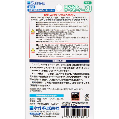 アクアリウム用品 アクア用品 アクア アクアリウム 熱帯魚 観賞魚 ベタ めだか 金魚 小魚 小型魚 水槽 ヒーター 保温 冬 温度調節 保温用品 温かい 暖かい あったかい 寒さ対策 小型水槽 ドワーフクラブ 水作 水槽用 水槽用ヒーター サーモスタット サーモ 一体 温度固定 固定式 温度固定式 ガラス水槽 ガラス水槽専用 生体 小型 コンパクトオートヒーター30 30W kak y26m03 20260416 4974105009816