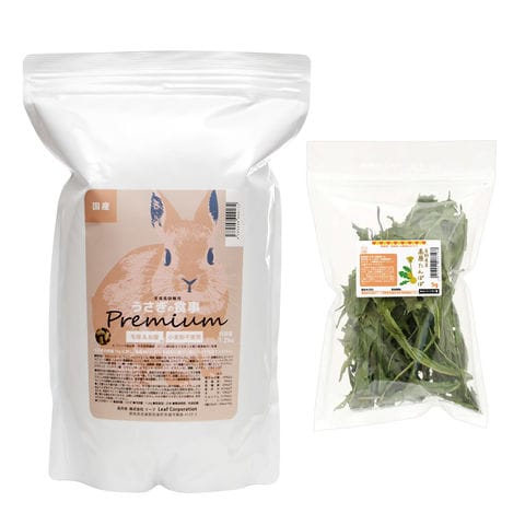 | セット内容 | 国産 うさぎの食事 プレミアム 1.2kg 全成長段階用×1 長野県産 高原たんぽぽ 5g×1 |