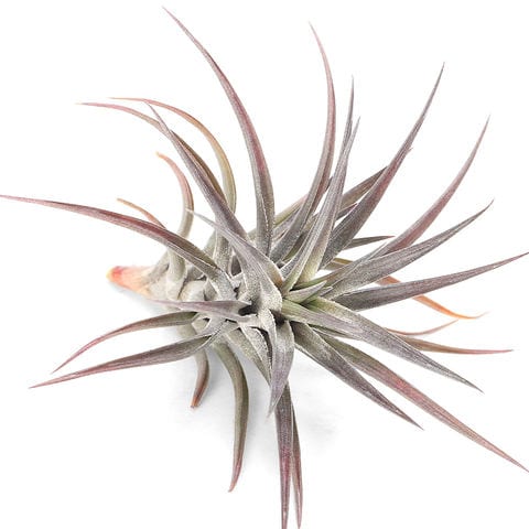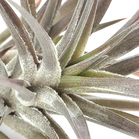 | 特徴 | 本種は有茎タイプのチランジアで、茎に沿って葉が立体的に展開する草姿が特徴です。全体にコンパクトながら骨格がはっきりとしており、野性味のあるフォルムを楽しめます。葉は細くやや硬質で、表面には細かなトリコームが見られます。環境や光量によって葉色は銀白色から暗赤紫色、茶色味を帯びることがあり、落ち着いた渋い色合いが魅力です。十分な光を与えることで葉色がより濃くなり、原種ならではの力強い表情が際立ちます。開花期には赤?桃色の花苞を伸ばし、青紫色の花を咲かせ、葉姿との美しいコントラストも見どころです。 |