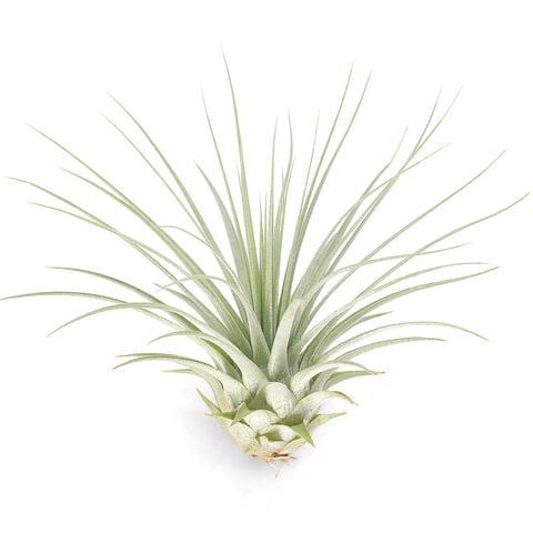 | 特徴 | 本種は、締まりのあるロゼットを形成する系統と、極細葉で柔らかな印象を持つ系統を交配したチランジアです。全体のシルエットはコンパクトで骨格がはっきりしており、葉は細く繊細に広がります。表面には銀白色のトリコームがうっすらと見られ、乾湿や光量によって色合いの変化を楽しめます。原種同士の中間的な性質を示すため、野性味と可憐さを併せ持ち、交配種ならではの個体差も魅力のひとつです。 |