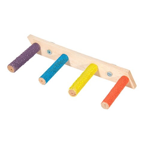 ●飼育ケージのワイヤーに2点ネジ固定で取り付けができるステップタイプのとまり木です。 ●表面に爪の伸びすぎを自然に抑える爪とぎ加工を施しています。 ●ぴょんぴょん行ったり来たり移動して、楽しみながら運動不足解消やストレス発散ができます。 ●4色のとまり木がケージ内をカラフルにいろどります。 |