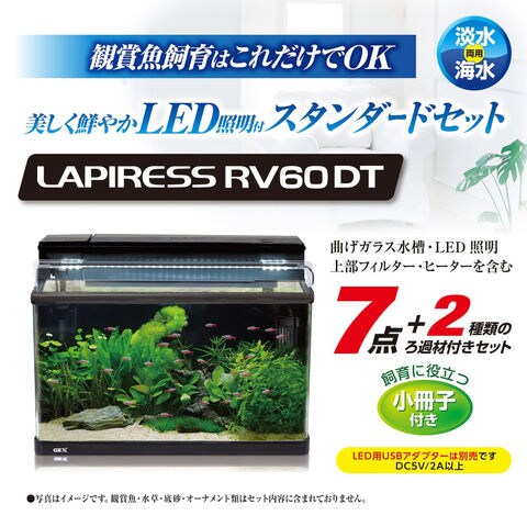 GEX ラピレスRV60DT LEDセット 60cm水槽セット USBアダプター付き お一人様1点限り 関東当日便