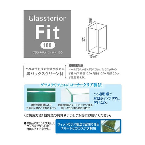GEX グラステリア フィット 100×1 《セット内容》 オールガラス水槽×1本 ガラスフタ×1枚 バックスクリーン×1枚 GEX サイドフローフィルター STON×1 GEX USBアダプター G-1A×1 |