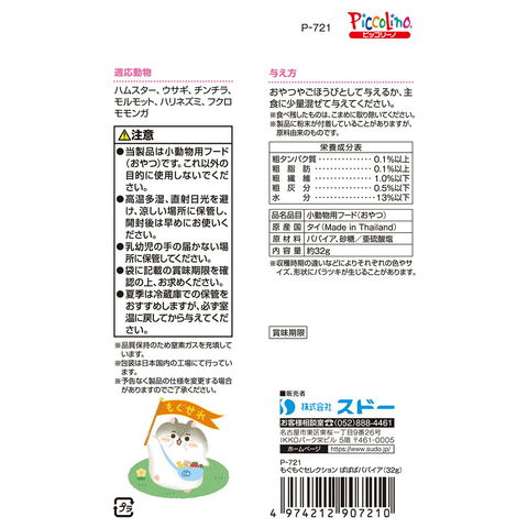 ご注意 ※本品は小動物用のおやつです。目的以外の用途では使用しないでください。