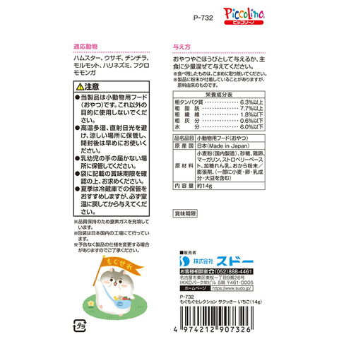 スドー もぐもぐセレクション サクッきー いちご 14g うさぎ ハムスター おやつ 小動物 小動物用品 餌 えさ エサ 飼料 フード おやつ オヤツ ご褒美 ご褒美 しつけ ハムスター うさぎ チンチラ モルモット ハリネズミ フクロモモンガ 小粒 小さめ 小さい 小袋 4974212907302 ビスケット スナック クッキー サクサク 苺 ストロベリー 果物 フルーツ 甘い TISK 20260318 y26m03 複数売り まとめ売り まとめ買い