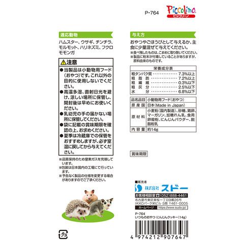 スドー いつものおやつ にんじんクッキー 14g うさぎ ハムスター おやつ 小動物 小動物用品 餌 えさ エサ 飼料 フード おやつ オヤツ ご褒美 ご褒美 しつけ ハムスター うさぎ チンチラ モルモット ハリネズミ フクロモモンガ 小粒 小さめ 小さい 小袋 4974212907647 ビスケット スナック クッキー サクサク にんじん 人参 野菜 甘い TISK 20260318 y26m03 複数売り まとめ売り まとめ買い