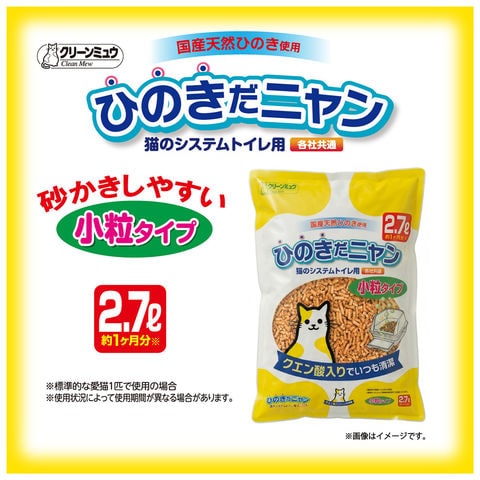 メーカー画像 猫砂 クリーンミュウ 国産天然 ひのきだニャン クエン酸入り 小粒タイプ 2.7L 4990968222056 20260424 y26m04 cngc 猫トイレ 猫用品 猫 ねこ ネコ cat トイレ 消臭 強力消臭 国産 日本製 日本 システムトイレ 天然ひのき 抗菌 さらさら さわやか 固まらない 流せない 天然 オシッコ 尿 ニオイ 臭い 飛び散りにくい お掃除楽 燃えるゴミ クエン酸 小粒タイプ 清潔 各社共通