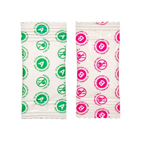 | 投与量 | 水量約100Lにつき、A1袋+B1袋を添加してください。 ※推奨量より多く使用しても安全ですが、入れすぎると一時的に水面がぬめったり、水が白く濁ることがあります。 |