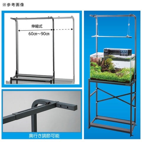 | 特長 | ●コトブキ工芸 スリムラック6030/9045共通の専用ライティングアームです。 ●伸縮式で60~90cmまで幅を調整できます。また奥行の溶接も可能です。 ●ライトを吊り下げて使用したい時に便利です。 |