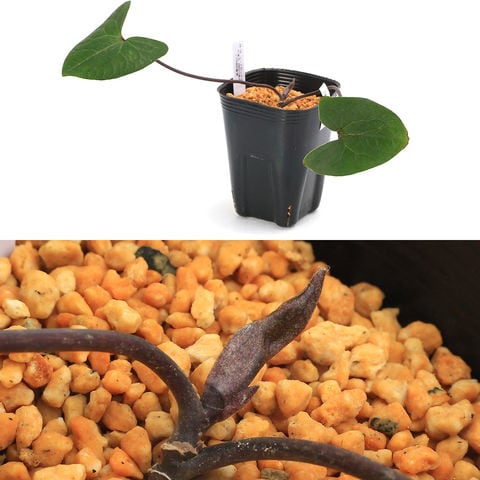 | 特徴 | コシノカンアオイは東北(日本海側)に分布し、特に新潟県に多く自生するカンアオイです。 カンアオイは冬季でも葉を落とさないことや、葉の模様に個体差が多く見られることから、古典園芸として古くから知られています。 育成は春先の芽出しの頃はしっかり日に当てますが、後は通年半日陰で管理します。 水切れ、加湿の両方に弱く鹿沼土単用などにして水はけの良い用土を使用し高植えにしたほうが良いでしょう。 耐寒性の強い種ですが、冬季は凍結に注意が必要です。 花は株の根元につく場合が多いため観賞しやすくするためには、鉢の高さや植え付け高さに工夫が必要です。 |