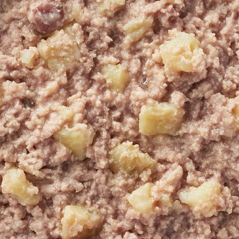 | 特長 | ●鶏ささみに皮付きさつまいもを加え、食べやすいミンチ状に仕上げた、犬用ウェットフードです。 ●グルコサミン、EPA、DHAを配合しています。 |