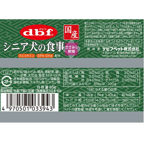 | デビフ シニア犬の食事 ささみ&軟骨 85g×6 | |