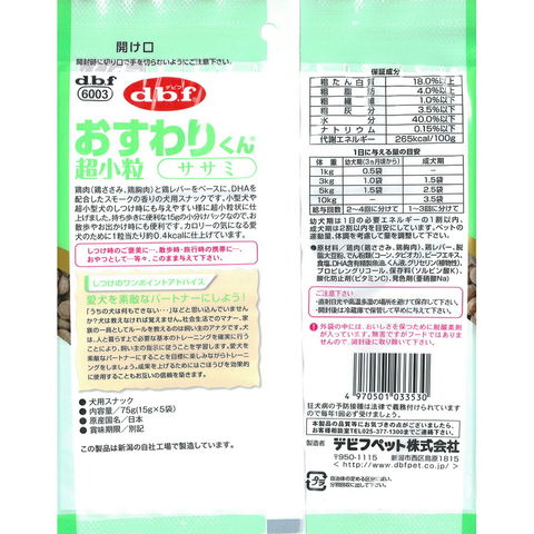 frditem_hidden デビフ おすわりくん 超小粒 ササミ 75g15g×5袋 4970501033530 犬用品 犬フード ドッグフード おやつ スナック ご褒美 ごほうび しつけ 躾 お散歩 お出かけ 旅行 国産 小分け 鶏 鶏ササミ とりささみ デビフ おすわりくん 超小粒 ササミ 75g(15g×5袋) 20251117 y25m11 kak まとめ まとめ買い 複数 複数売り