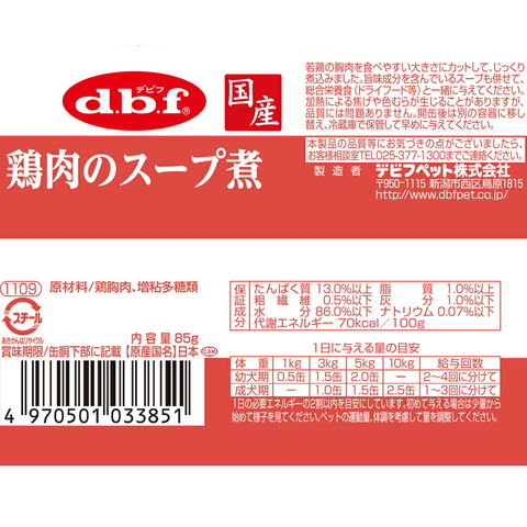 デビフ 鶏肉のスープ煮 85g 4970501033851 20230303 y23m03 Y.K. 犬 いぬ 猫用 いぬ用 ドッグ dog ドッグフード 犬フード ペットフード フード 餌 エサ ごはん ウェット ウェットフード 栄養補完食 スープ 缶 国産 日本産 チキン 鶏 chicken とり肉 鶏肉 デビフ 鶏肉のスープ煮 85g 缶詰 犬 ウェットフード ドッグフード 20251117 y25m11 kak まとめ まとめ買い 複数 複数売り