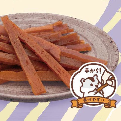 ●あっさりヘルシーな旨みの鶏ササミを使用のおやつです。 ●良質な動物性たん白質を手軽に摂取できます。 ●細くてやわらかく、食べやすい極細タイプです。 ●保存料・着色料・発色剤・酸化防止剤不使用。 |