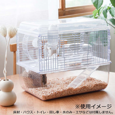 ※本品はハムスター用飼育ケージです。目的用途以外には使用しないでください。 ※ペットの大きさによっては、金網やパーツのすき間に入り込んでしまうおそれがあるため注意して使用してください。 ※画像なイメージです、食器以外のアイテム(トイレ・回し車・ドリンカー・ハウス・床材・餌)は付属しておりません。 |