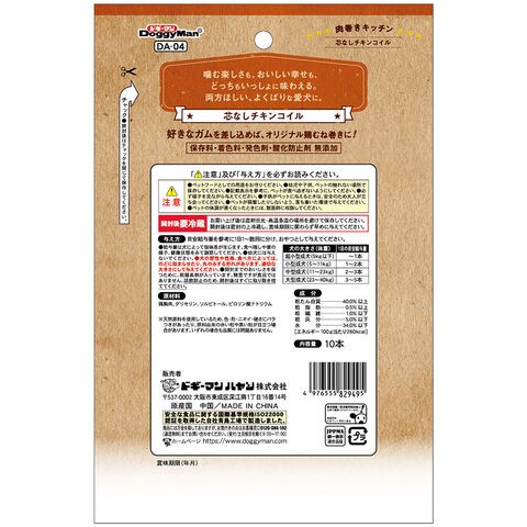 ドギーマン 肉巻きキッチン 芯なしチキンコイル 10本 dogfood 犬 いぬ イヌ ドッグフード ドックフード ドッグ エサ えさ 餌 おやつ ごほうび 褒美 しつけ フード 飼料 犬のおやつ いぬのおやつ 犬のエサ 超小型犬 小型犬 中型犬 大型犬 成犬 アダルト 高齢 高齢犬 シニア シニア犬 20260310 kak y26m03 4976555829495 ジャーキー スティック スティック状 棒状 保存料無添加 着色料無添加 発色剤無添加 酸化防止剤無添加 さつまいも ササミ ささみ 鶏肉 鶏ささみ ソフト ソフト対うプ 柔らかい やわらかい コイル状 melma2603dgy2