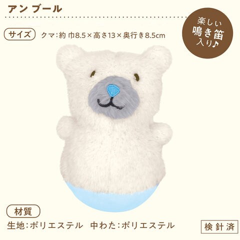 | 特長 | ●とろけるように極上タッチのぬいぐるみです。 ●ぽってりとしたフォルムでお鼻やお手てで触れるたびに、コロコロと転がる愉快な仲間たちです。 ●楽しい鳴き笛入り。 |