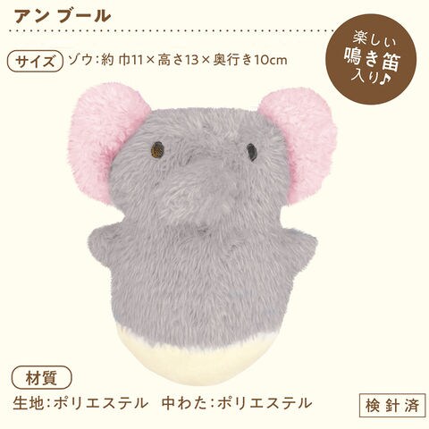 | 特長 | ●とろけるように極上タッチのぬいぐるみです。 ●ぽってりとしたフォルムでお鼻やお手てで触れるたびに、コロコロと転がる愉快な仲間たちです。 ●楽しい鳴き笛入り。 |