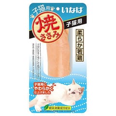 | 特長 | ●ふっくら柔らかな若鶏のささみを、ゆっくり香ばしく焼き上げました。 ●保存料、発色剤、着色料は使用しておりません。 ●ほたて、カニエキス配合で、愛猫が喜ぶほたてたらば風味に仕上げています。 |
